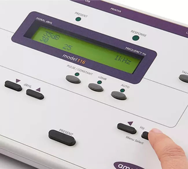 The Model 116 has a clear display panel and soft key layout, this allows for total focus on the test subject and reduces the time it takes to complete hearing assessments.