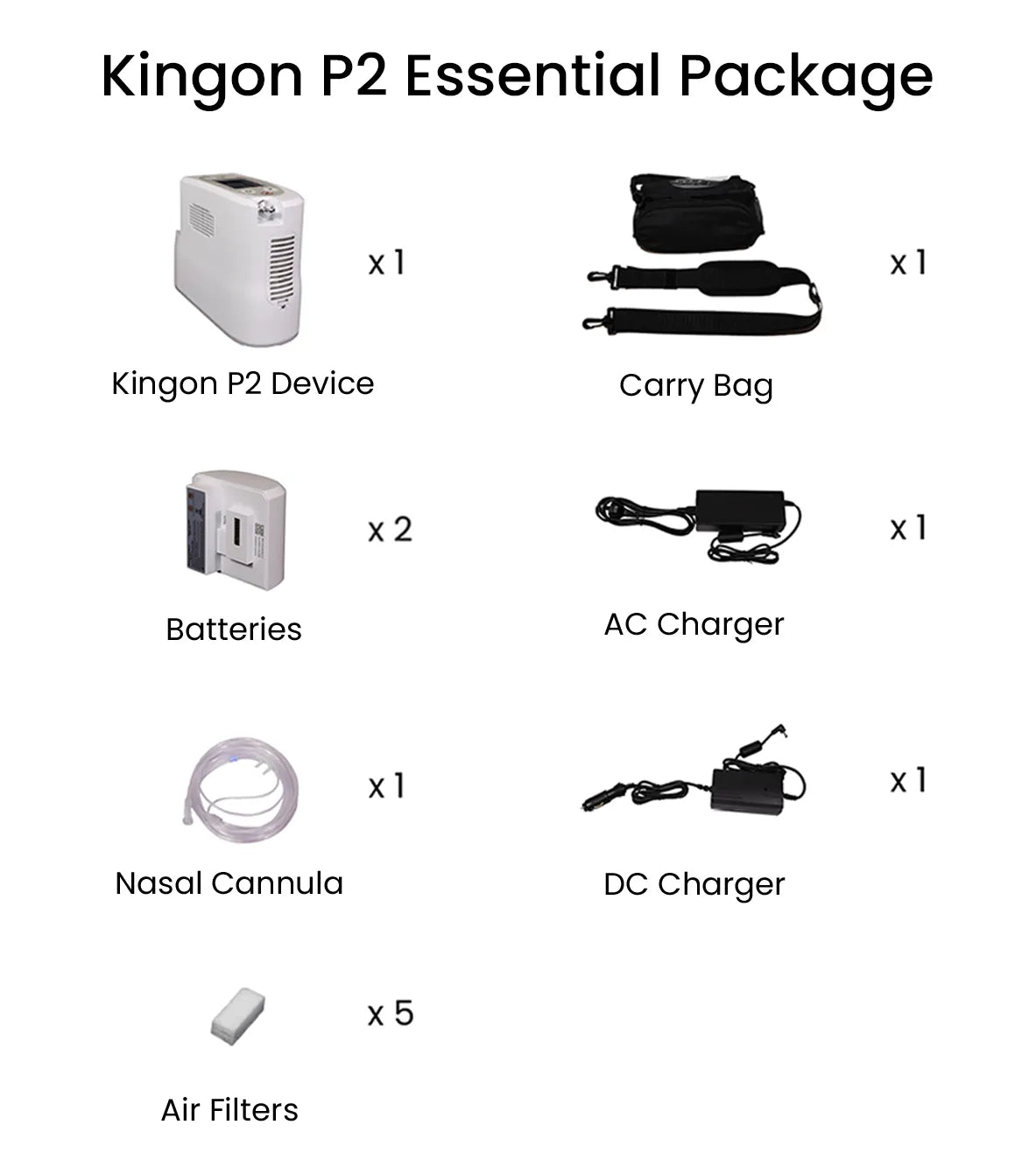 Kingon P2 Portable Oxygen Concentrator - A. Kingon P2 Essential Package may not be in stock. Please call us for ETA before purchasing.