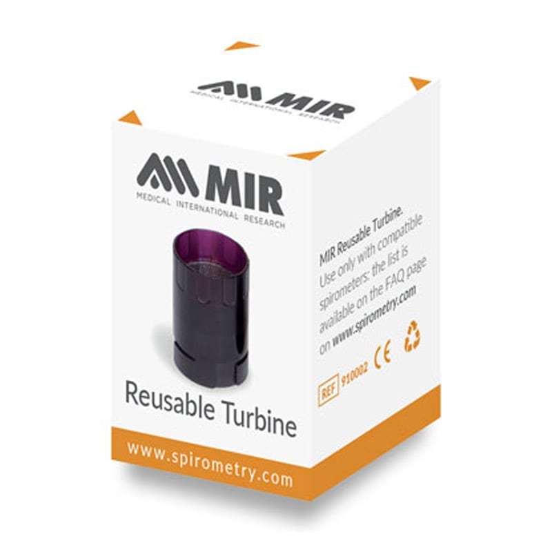 The MIR Reusable Turbine is a high-precision accessory designed for compatibility with a range of MIR Spirometers, including Minispir 2, Spirobank 2, and Spirolab 3 & 4. It's an essential tool for healthcare professionals and individuals monitoring respiratory health, providing an efficient and accurate way to conduct spirometry tests. The turbine is engineered to meet the latest ATS/ERS standards for accuracy, ensuring reliable results.