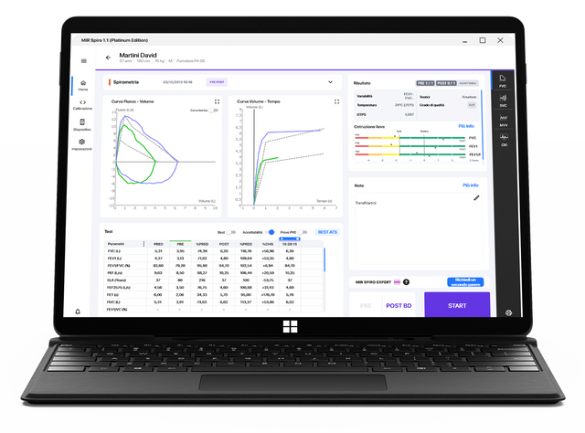 | Supported spirometry tests | FVC (Forced Vital Capacity) PRE and POST bronchodilator |